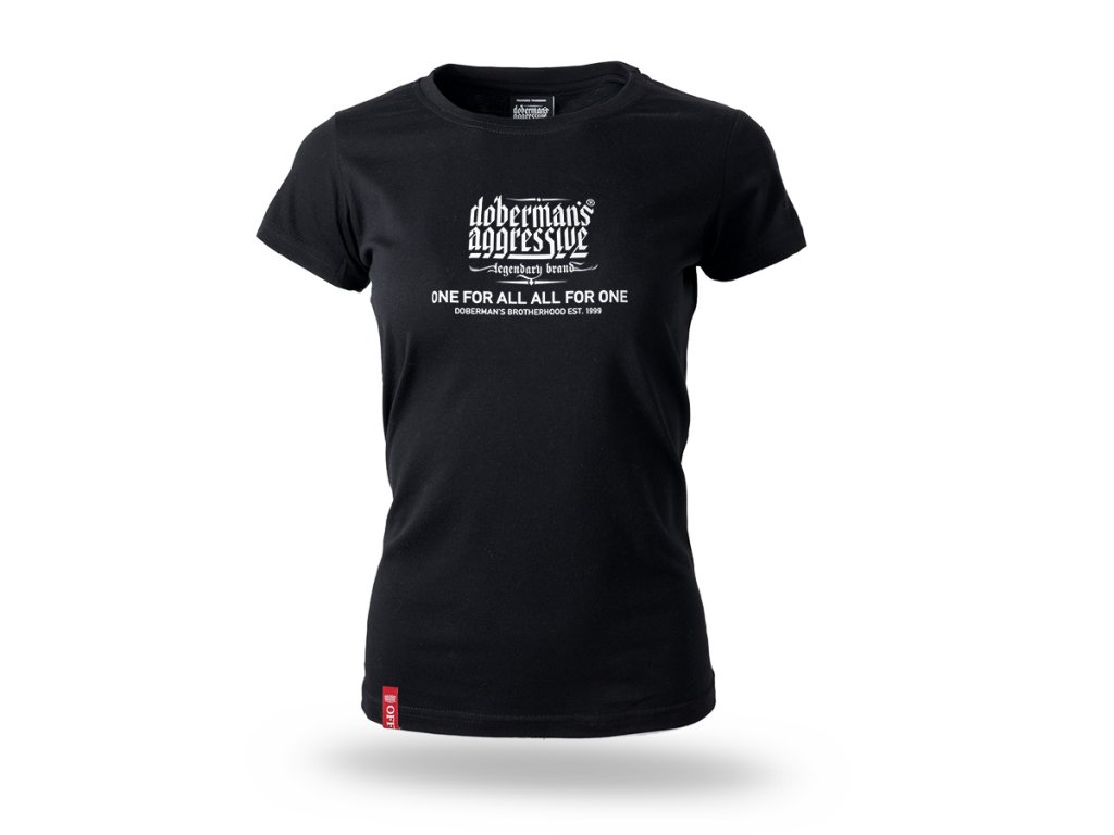 Model s krátkym rukávom, obliekaný cez hlavu, s klasickým okrúhlym výstrihom. Strih jemne zvýrazňuje siluetu a zároveň zabezpečuje pohodlie a voľnosť pohybu pri každodennom nosení. Na prednej strane sa nachádza výrazná potlač s logom „Doberman’s Aggressive – legendary brand“ a sloganom „One for all, all for one – Doberman’s Brotherhood est. 1999“, ktorý zdôrazňuje charakter a identitu značky. Minimalistické spracovanie a univerzálny strih sa hodia na športové aj voľnočasové outfity.