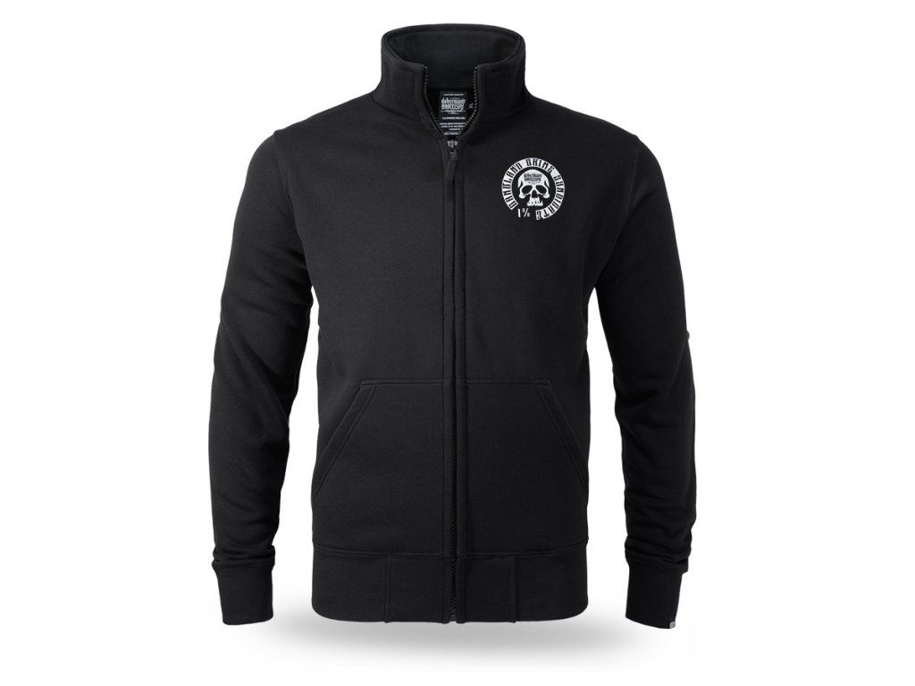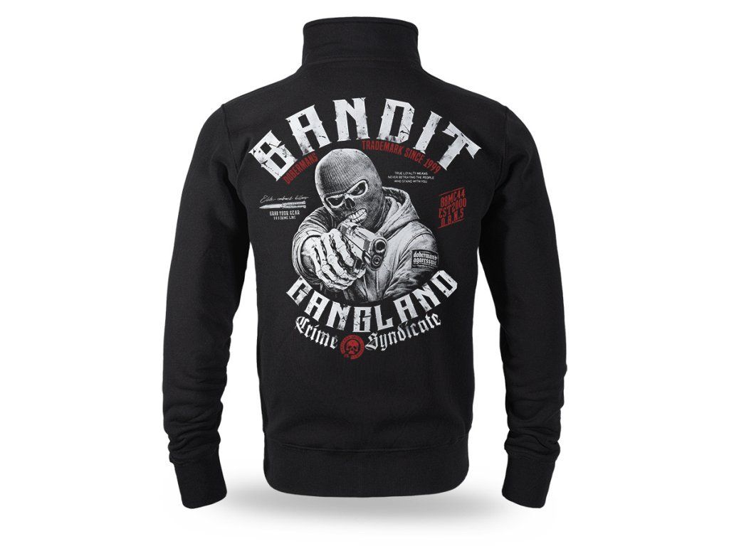 Model je vyrobený v pohodlnom klasickom strihu so zapínaním na zips po celej dĺžke. Mikina má vysoký stojačik, ktorý pomáha chrániť pred chladom, a praktické bočné vrecká. Na zadnej strane sa nachádza veľká výrazná potlač zobrazujúca maskovanú postavu so zbraňou obklopenú nápisom „Banditz Gangland Crime Syndicate“ a ďalšími grafickými prvkami typickými pre značku Doberman’s Aggressive. Na prednej strane je menšia potlač na úrovni hrude. Patentové manžety na rukávoch a spodnom leme zabezpečujú dobré prispôsobenie a pohodlie pri každodennom nosení.