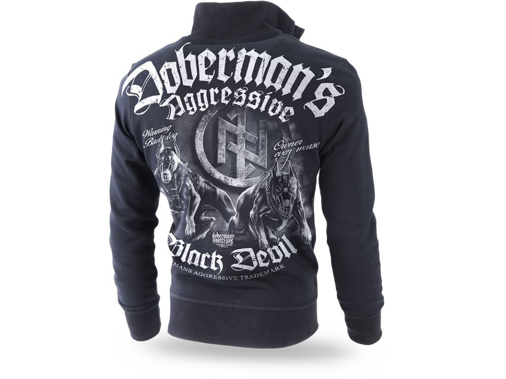 Na prednej strane sú dve vrecká, v dolnej časti a u rukávov sú sťahovacie lemy. Na ľavom rukáve je nášivka s logom značky. Mikina je vyrobená z vysoko kvalitnej bavlny s hmotnosťou 320g. Na zadnej strane mikiny sa nachádza potlač s nápisom Black Devil. Potlač na zadnej strane zaberá takmer celý povrch a zobrazuje dva dobermany a runový symbol.