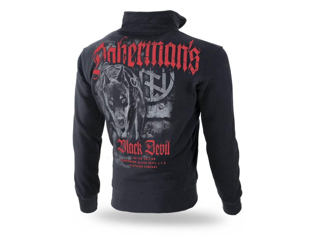 V pozadí vytlačený kruh s runovými znakmi, nižšie – nápis Black Devil zhotovený gotickým písmom. Kruh sa v menšom rozmere opakuje na prednej strane mikiny, na úrovni ľavého ramena. Model na zips s vysokým stojačikom. Dolná časť a rukávy sú zakončené odolnými sťahovacími lemami. Pri krku vnútorné lemovanie v červenej farbe. Mikina vyrobená zo stopercentnej bavlny o hmotnosti 320g.