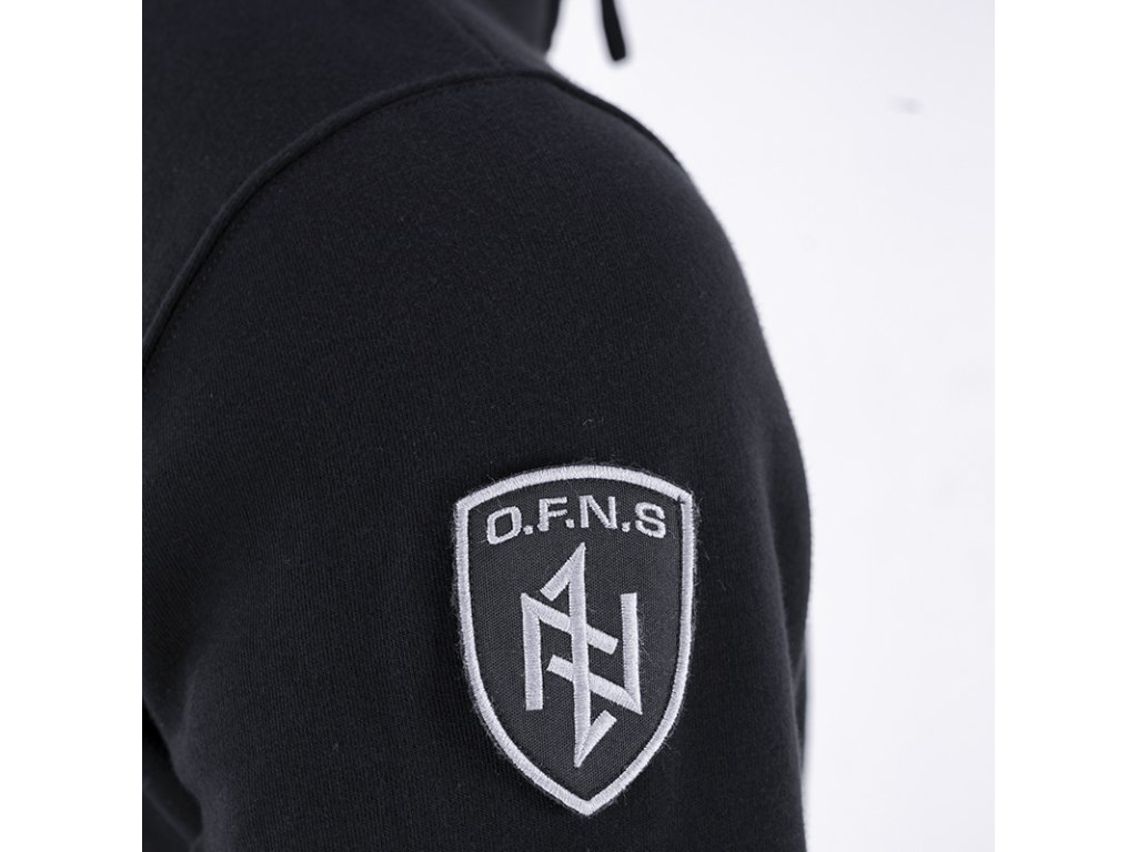 Mikina je vyrobená z vysoko kvalitnej bavlny, má dve vrecká na prednej strane a je zakončená sťahovacími lemy. Na ľavom rukáve je malá ceduľka s logom značky. Kapucňa je ozdobená širokou šnúrkou s kovovými zakončeniami a logom značky. Model O.F.N.S. Shield s veľkým našívaným štítom na ramene.