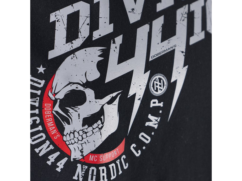 Pri rukávov a v dolnej časti mikiny sú odolné sťahovacie lemy. Model má zvýšený golier, ktorý chráni pred chladom. Na prednej strane sú dve vrecká. Na ľavej prednej strane sa nachádza číslo 44. Spodná časť čísel prechádza do bleskov. Charakteristiku produktu dáva lebka nastavená bokom, obklopená červeným polkruhom a s nápismi. Na zadnej strane je veľký nápis DIVISION 44 a lebka obklopená červeným polkruhom a s nápismi.