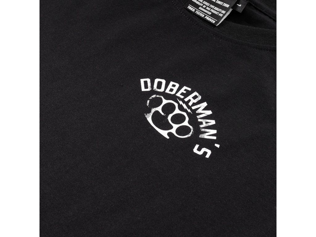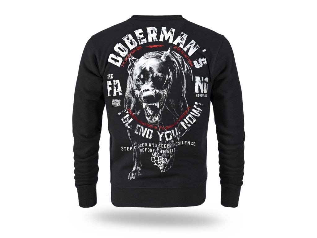 Model obliekaný cez hlavu s okrúhlym výstrihom zakončeným elastickým patentom. Na zadnej strane sa nachádza veľká, výrazná grafika agresívneho dobermana v dynamickej útočnej póze, doplnená silnými sloganmi zdôrazňujúcimi nekompromisný charakter dizajnu. Na hrudi je umiestnená menšia potlač s názvom značky a motívom boxera. Rukávy a spodný lem sú zakončené elastickými patentmi pre lepšie prispôsobenie a pohodlie pri nosení. Celkový vzhľad odráža charakteristický, výrazný štýl značky Doberman’s Aggressive.