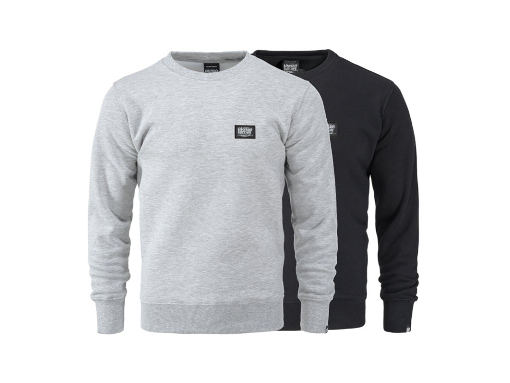 Klasická mikina s rovným strihom, bez kapucne, s okrúhlym výstrihom a rebrovanými manžetami a spodným lemom.