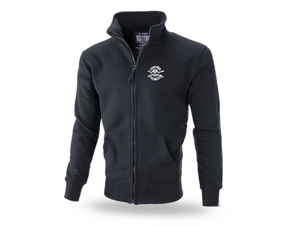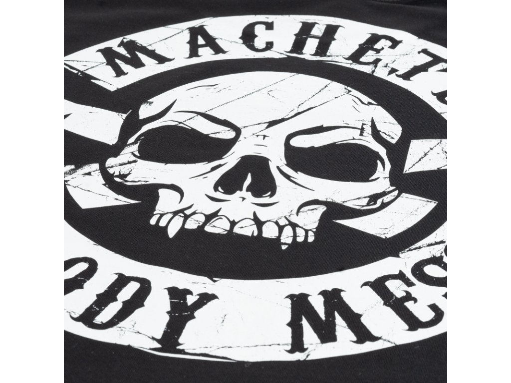 Mikina je vyrobená z vysoko kvalitnej bavlny. Na ľavom rukáve je malá ceduľka s logom Doberman's Aggressive. Na zadnej strane mikiny je vzor lebky a nápis MACHETE BLOODY MESS a tiež menšie logo značky DOBERMAN'S. Na zadnej srane mikiny je identická potlač v menšom formáte.