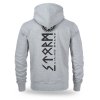 Mikina je vyrobená z vysoko kvalitnej bavlny, má dve vrecká na prednej strane, zakončená sťahovacími lemami. Na ľavom rukáve je malá ceduľka s logom značky. Kapucňa je ozdobená pevnou šnúrkou a kovovými zakončeniami s logom značky. Na zadnej strane je nápis STORM VIKING BRAND a tiež severský symbol prevedený metódou vypuklej potlače. Na prednej strane mikiny je menší vzor, ktorý nadväzuje na hlavný motív.