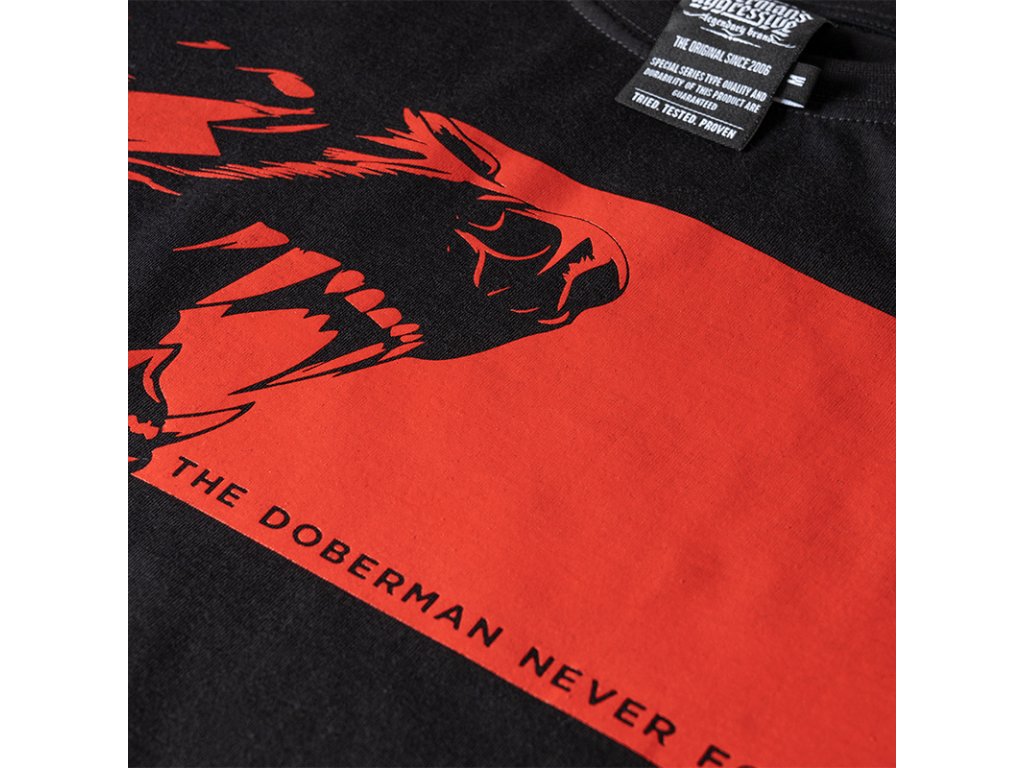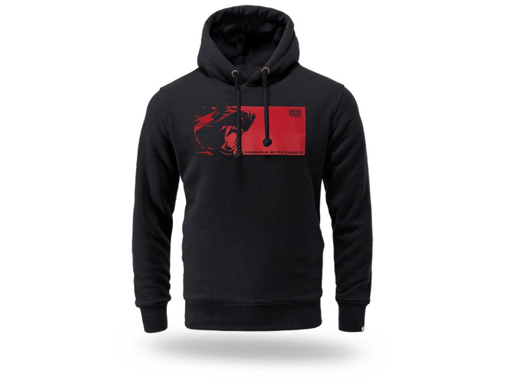 Vyrobená z mäkkého a príjemného materiálu, ktorý poskytuje tepelný komfort. Má nastaviteľnú kapucňu so šnúrkou, pružné manžety a spodný lem. Na prednej strane sa nachádza obdĺžniková grafika s dynamickým motívom dobermana a nápisom „Doberman Never Forgets“. Zadná časť je jednofarebná. Ideálny model na chladnejšie dni.