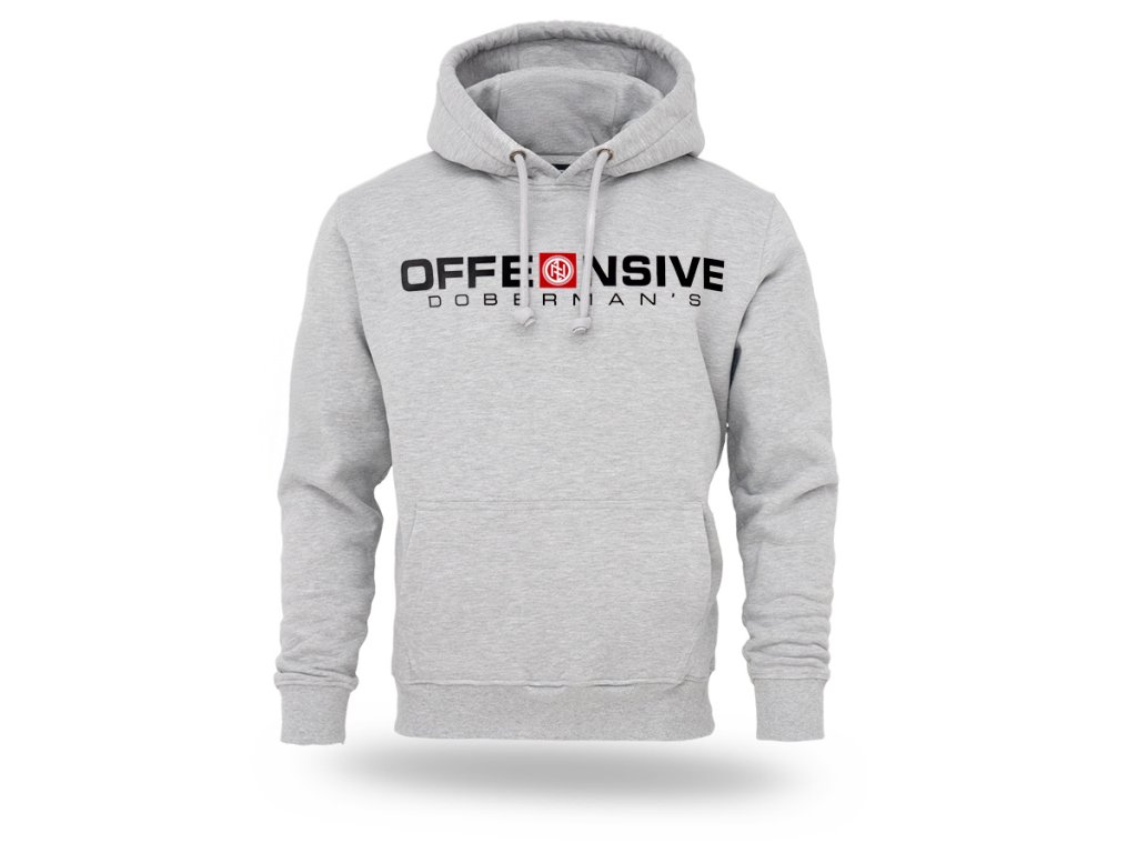 Model obliekaný cez hlavu, vybavený nastaviteľnou kapucňou so šnúrkami a praktickým klokankovým vreckom na prednej strane. Na hrudi sa nachádza výrazná potlač „OFFENSIVE DOBERMAN’S“ s charakteristickým emblémom značky, ktorá podčiarkuje dynamický a výrazný charakter kolekcie. Spodný lem a manžety sú zakončené elastickými patentmi pre dobré prispôsobenie a pohodlie pri nosení. Jednoduchý strih spája každodenné pohodlie s výrazným grafickým prvkom.