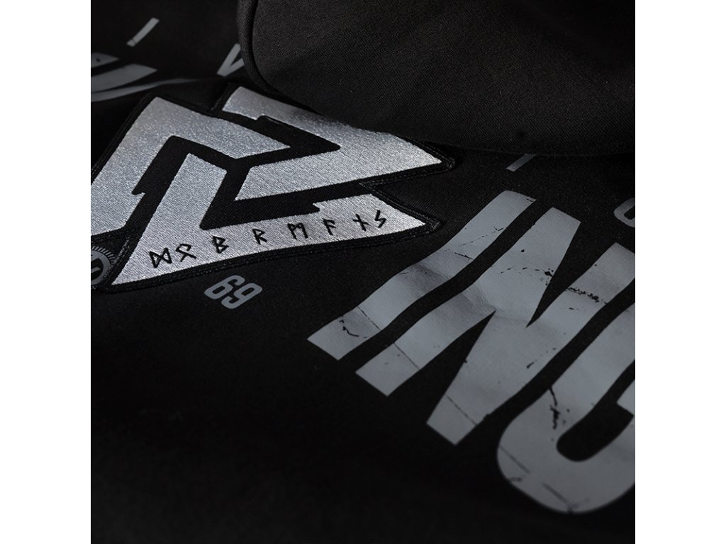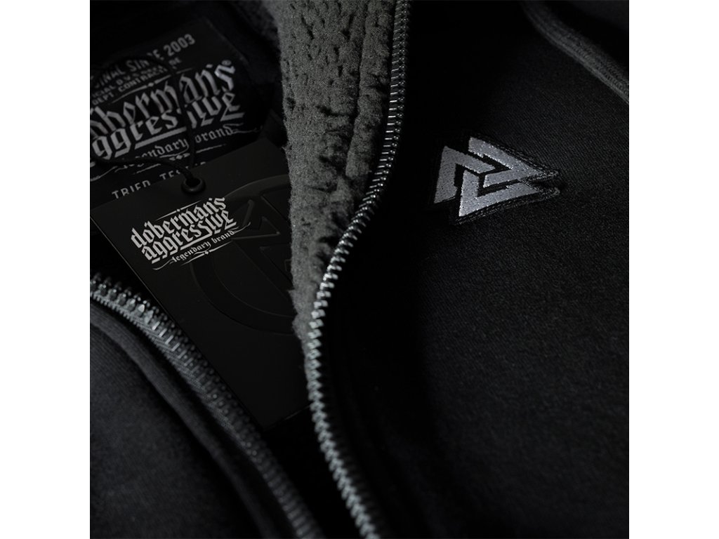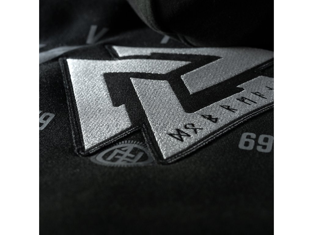 Mikina je vyrobená z vysoko kvalitnej bavlny, zakončená sťahovacími lemy a s dvoma vreckami na prednej strane. Kapucňa je ozdobená širokou šnúrkou a kovovými zakončeniami s logom značky. Mikina zo série Valknut jej inšpirovaná severskou symbolikou. Zadná časť mikiny je zdobená kombináciou vyšívaného symbolu Valknut a potlače Viking Division. Na ľavej strane hrudi je vyšívaná miniatúra škandinávskeho symbolu.