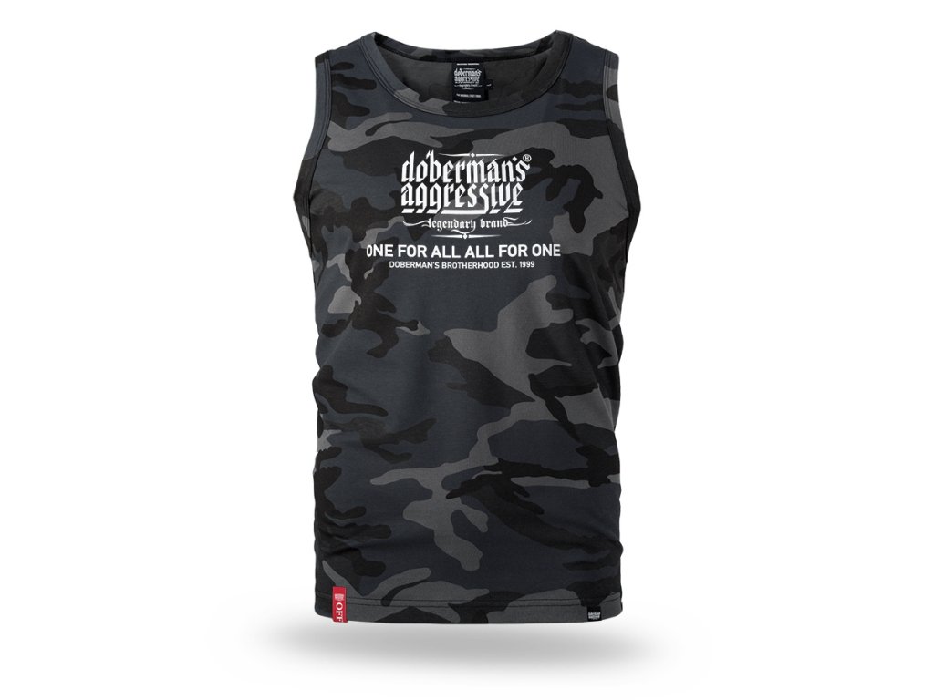 Model s okrúhlym výstrihom a voľnejším strihom, ktorý zabezpečuje pohodlie a plnú voľnosť pohybu. Na prednej strane sa nachádza výrazná potlač s logotypom „Doberman’s Aggressive – legendary brand“ a sloganom „One for all, all for one – Doberman’s Brotherhood est. 1999“, zdôrazňujúcim identitu a charakter značky. Jednoduchý a funkčný dizajn je ideálny na športové aktivity aj každodenné nosenie.