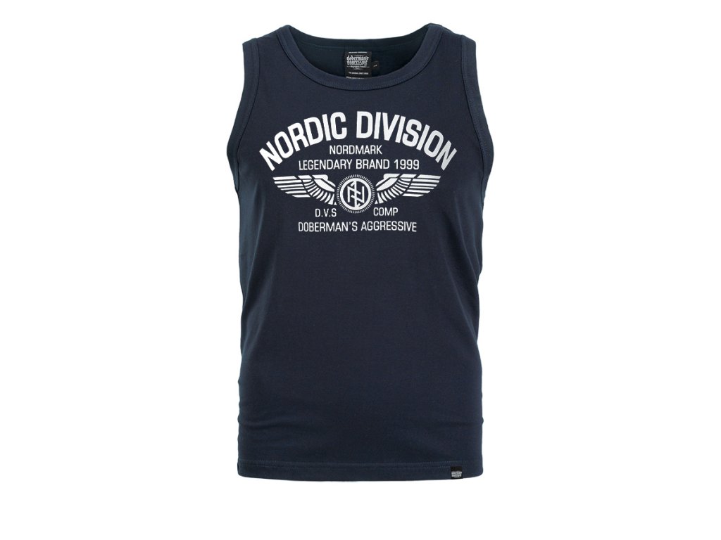 Model vyrobený v pohodlnom klasickom strihu, ktorý zabezpečuje voľnosť pohybu a komfort pri každodennom nosení. Na prednej strane sa nachádza veľká potlač s nápisom „Nordic Division – Nordmark Legendary Brand 1999“, doplnená grafickým motívom krídel a emblémom značky. Dizajn je inšpirovaný severskou a vojenskou estetikou a zdôrazňuje charakteristický a rozpoznateľný štýl značky. Tielko má okrúhly výstrih a širšie prieramky, vďaka čomu sa dobre prispôsobí postave a je vhodné na športové aktivity aj každodenné nosenie.