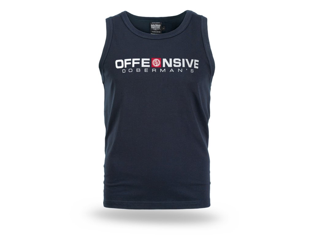 Model bez rukávov s klasickým okrúhlym výstrihom zakončeným elastickým lemom. Na prednej strane sa nachádza výrazná potlač „OFFENSIVE DOBERMAN’S“ s charakteristickým emblémom značky, ktorá podčiarkuje dynamický a výrazný charakter kolekcie. Jednoduchý strih zabezpečuje voľnosť pohybu a pohodlie, najmä pri športových aktivitách alebo počas teplejších dní. Tielko spája minimalistickú formu s výrazným a ľahko rozpoznateľným grafickým prvkom.