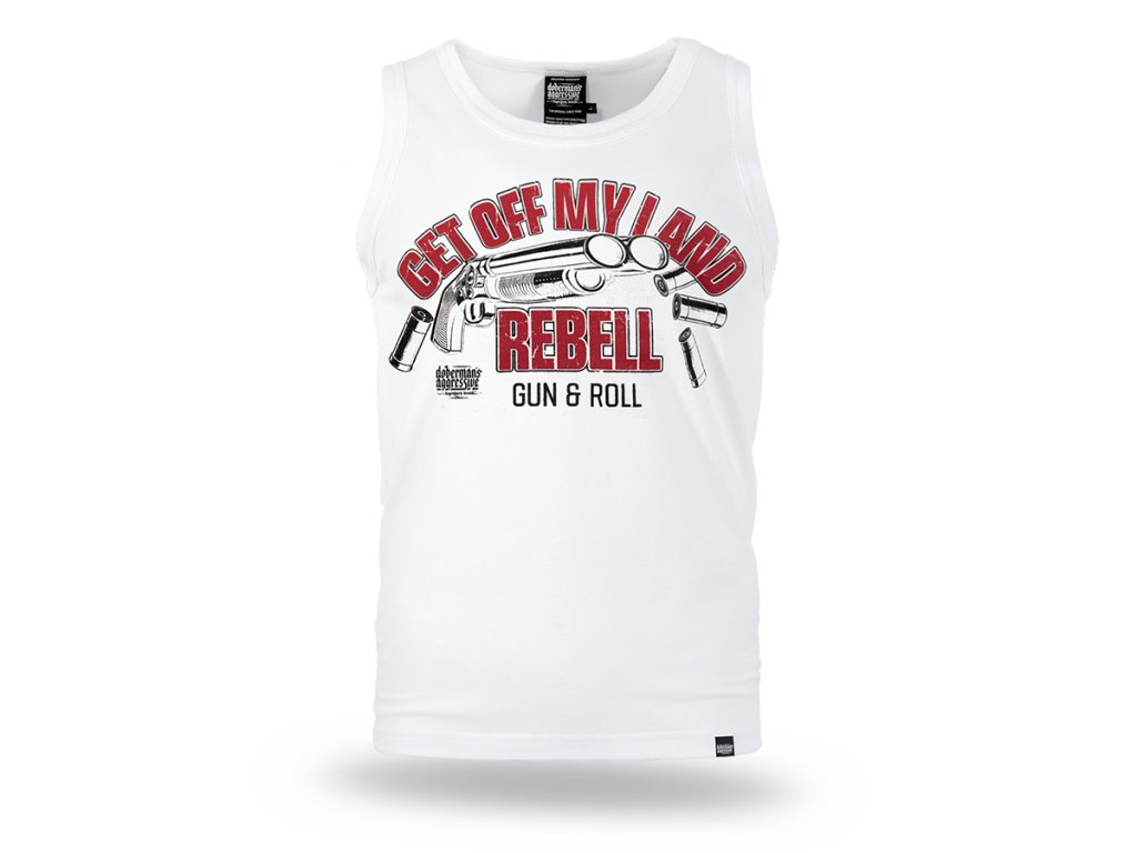 Vyrobené z vysoko kvalitnej bavlny, ktorá zabezpečuje pohodlie a voľnosť pohybu. Na prednej strane sa nachádza výrazná potlač s motívom zbrane a nápisom „Get Off My Land REBELL Gun & Roll“, ktorá dodáva modelu silný a charakteristický štýl. Zadná strana zostáva hladká, bez ďalších ozdôb. Model ideálny na teplejšie dni alebo ako súčasť vrstveného outfitu pre tých, ktorí preferujú odvážny dizajn.