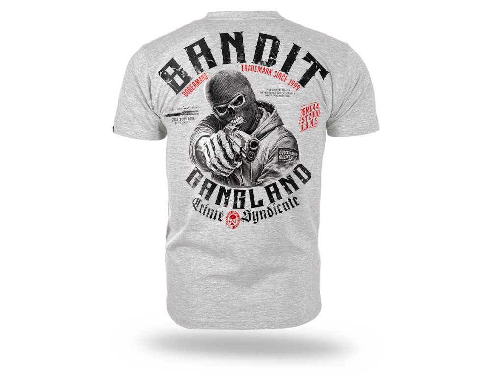 Model je vyrobený v pohodlnom klasickom strihu s okrúhlym výstrihom zakončeným elastickým patentom. Na zadnej strane sa nachádza veľká výrazná potlač zobrazujúca maskovanú postavu mieriacu zbraňou, obklopenú nápisom „Banditz Gangland Crime Syndicate“ a ďalšími grafickými prvkami typickými pre značku Doberman’s Aggressive. Na prednej strane je menšia potlač na úrovni hrude. Dynamická grafika zdôrazňuje surový charakter inšpirovaný streetwearovou kultúrou.