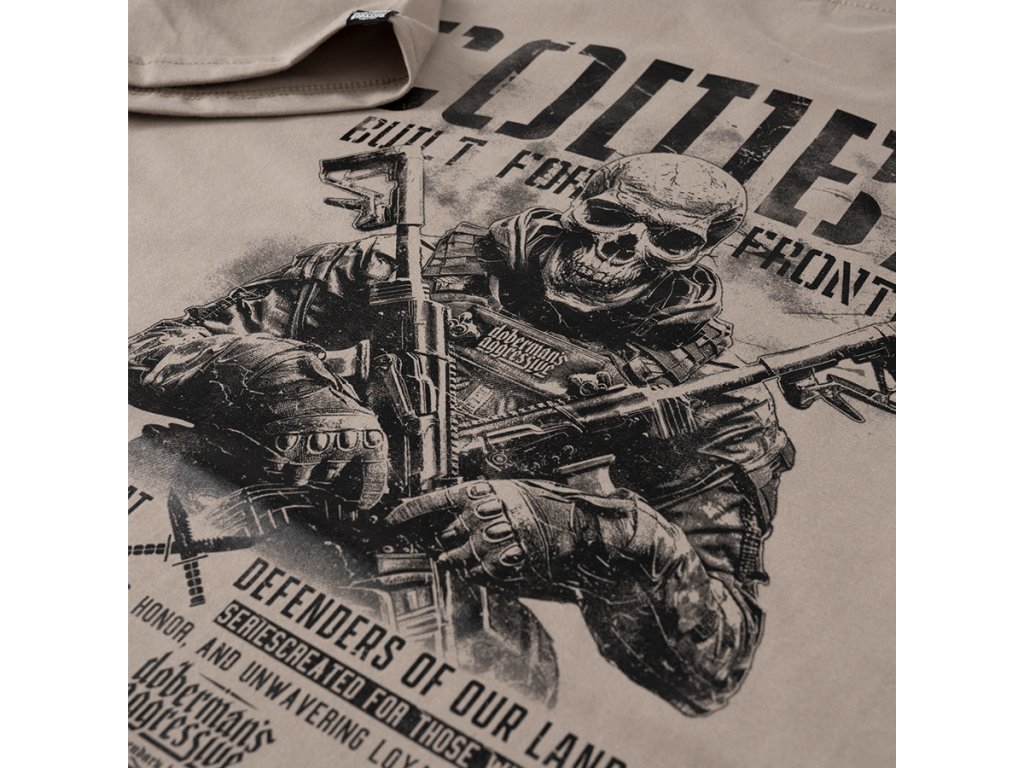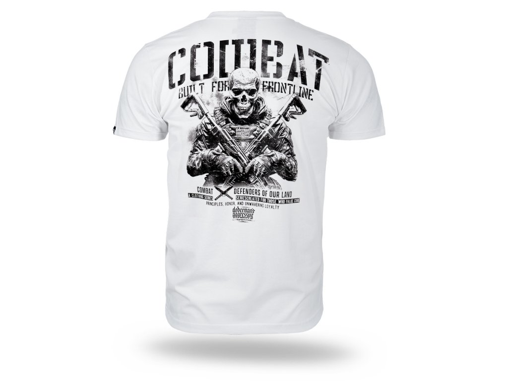 Model s krátkym rukávom, obliekaný cez hlavu, s okrúhlym výstrihom zakončeným elastickým patentom. Na chrbte sa nachádza veľká, výrazná potlač s taktickým motívom a sloganom „Combat – Built for the Frontline“ spolu s ďalšími detailmi zdôrazňujúcimi vojenský charakter kolekcie. Na prednej strane je menší emblém na hrudi nadväzujúci na hlavnú grafiku. Strih zabezpečuje pohodlie a voľnosť pohybu, vďaka čomu je vhodný na každodenné nosenie aj na outfity inšpirované vojenským štýlom.