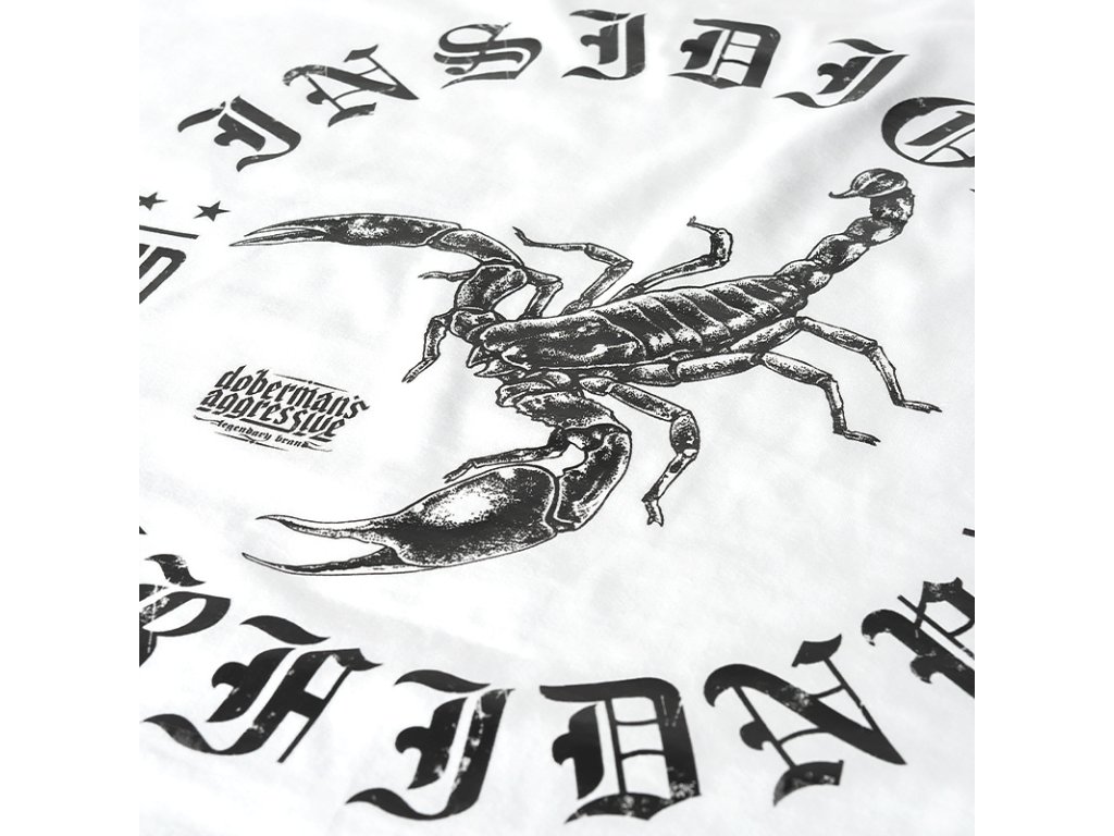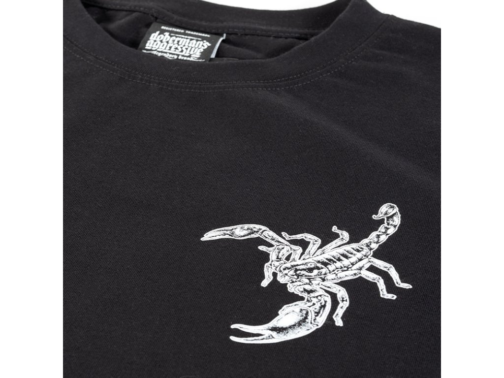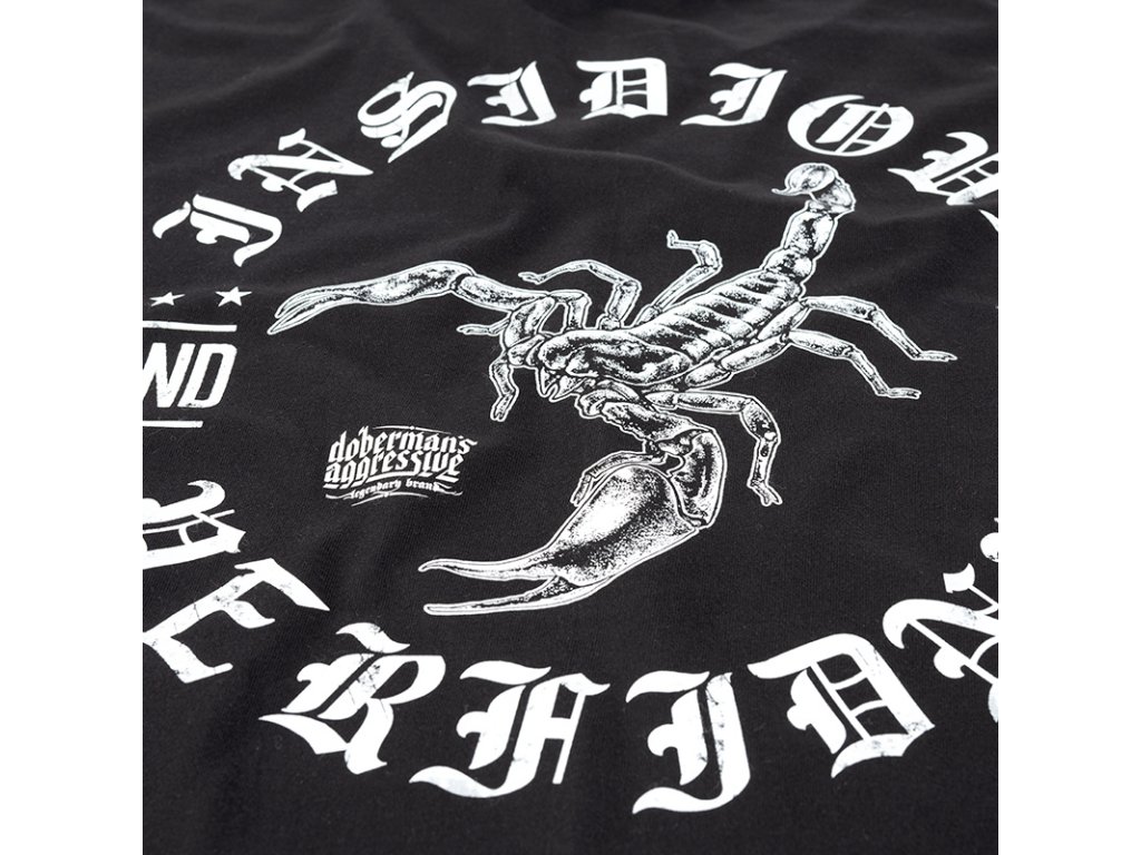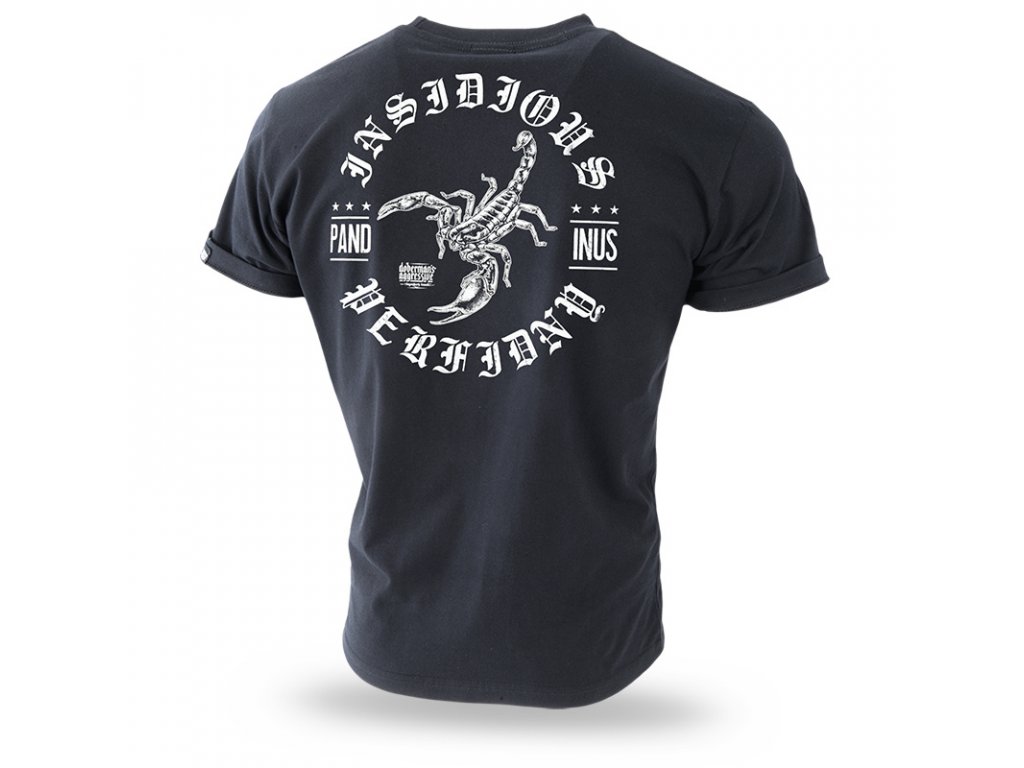 Na ľavom rukáve je malá ceduľka s logom značky. Model INSIDIOUS s charakteristickým vzorom na chrbte, zobrazuje škorpióna s gotickým nápisom. Na prednej strane je menší vzor, ktorý nadväzuje na zadnú stranu trička.