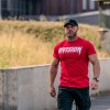Tričko je vyrobené z bavlny s hmotnosťou 200g. Na ľavom rukáve je malá ceduľka s logom Doberman's Aggressive. Na prednej strane trička sa nachádza nápis DIVISION napísaný tučným písmom, navyše do písmena N bol začlenený symbol blesku, ktorý dodáva jedinečný charakter. V dolnej časti je nápis DOBERMANS. Celok vzoru je vytvorený metódou vypuklej potlače, vďaka tomu je tento model ešte viac jedinečný.