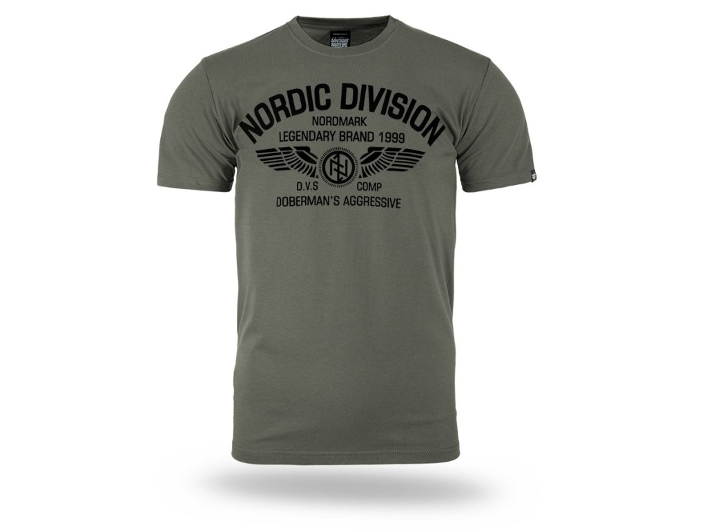 Model vyrobený v pohodlnom klasickom strihu, ktorý zabezpečuje komfort pri každodennom nosení. Na prednej strane sa nachádza veľká potlač s nápisom „Nordic Division – Nordmark Legendary Brand 1999“, doplnená grafickým motívom krídel a emblémom značky. Dizajn je inšpirovaný severskou a vojenskou estetikou a zdôrazňuje charakteristický a rozpoznateľný štýl značky. Tričko má okrúhly výstrih zakončený elastickým patentom a klasické rukávy, vďaka čomu sa dobre prispôsobí postave a je vhodné na každodenné nosenie.