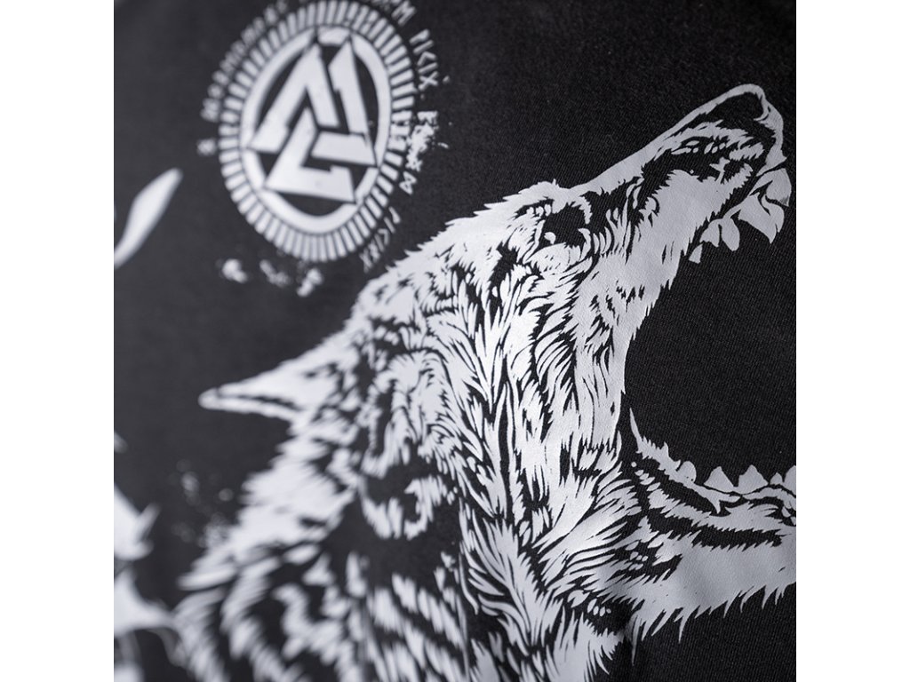 Na pravom rukáve je vyšitý runový znak Valknut, spojený so severskou mytológiou, ktorý označuje padlých s mečom v ruke. Na ľavej prednej strane je symbol Valknut v podobe potlače. Na zadnej strane je veľký nápis v gotickom štýle a rozzúrený vlk s otvorenou tlamou.